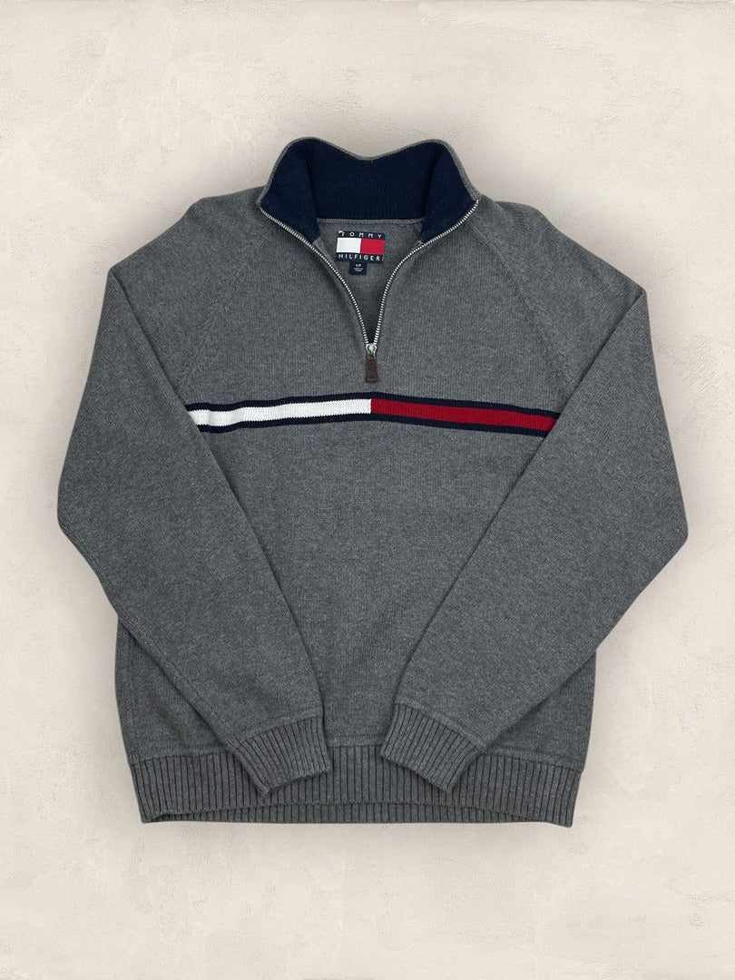 Pull 1/4 zip, Demi-zip Tommy Hilfiger - Homme S - Gris - Coton - très bon état - Ts0234